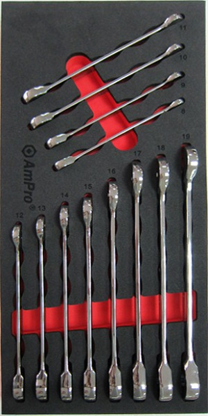 Приобрести T41478 Набор комбинированных трещоточных ключей 12пр.(8-19мм) в мягком ложементе от компании AmPro (Тайвань) из раздела Ложементы мягкие (VA серия)