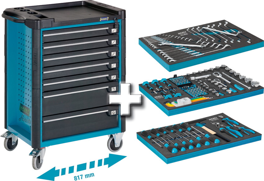 HAZET Тележка инструментальная 7 ящиков, синяя, с набором инструментов 141 предметов.