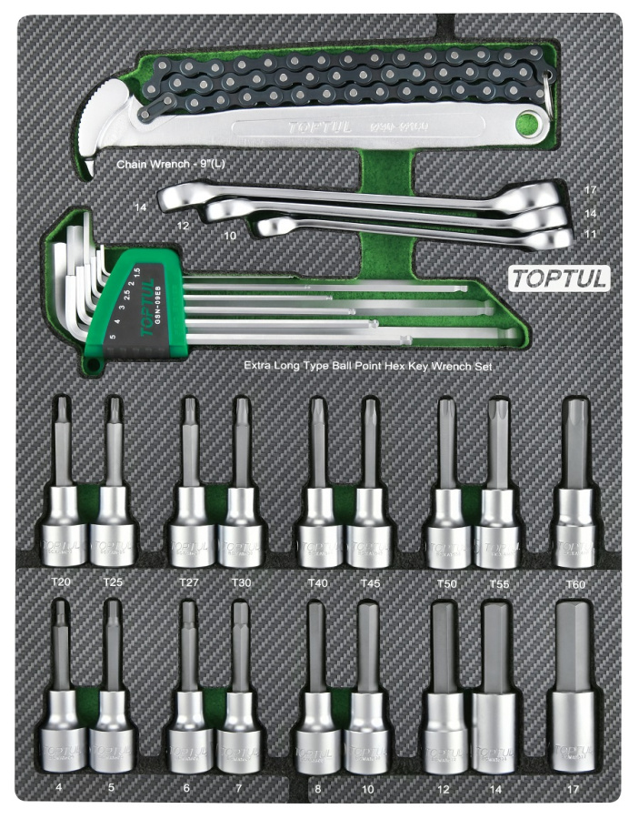 Набор торцевых насадок, шестигранники Г-образные и разрезные ключи, 31 пр. в мягком ложементе TOPTUL GEB3109 купить в Барнауле и других городах России