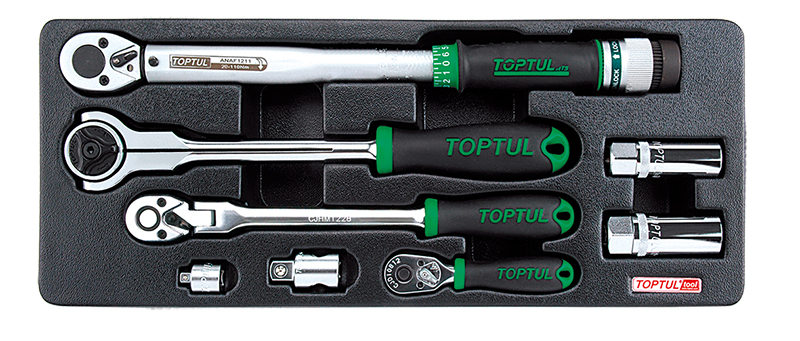 Набор трещоток 1/4", 3/8", 1/2", динамометрический ключ 3/8" 20-110 Нм, переходники и свечные головки, 8 предметов в ложементе (B) TOPTUL купить в Барнауле и других городах России
