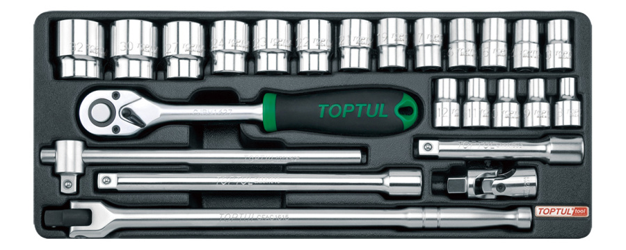 Набор головок и аксессуаров 1/2" 6-32 мм, 24 предмета, в ложементе TOPTUL