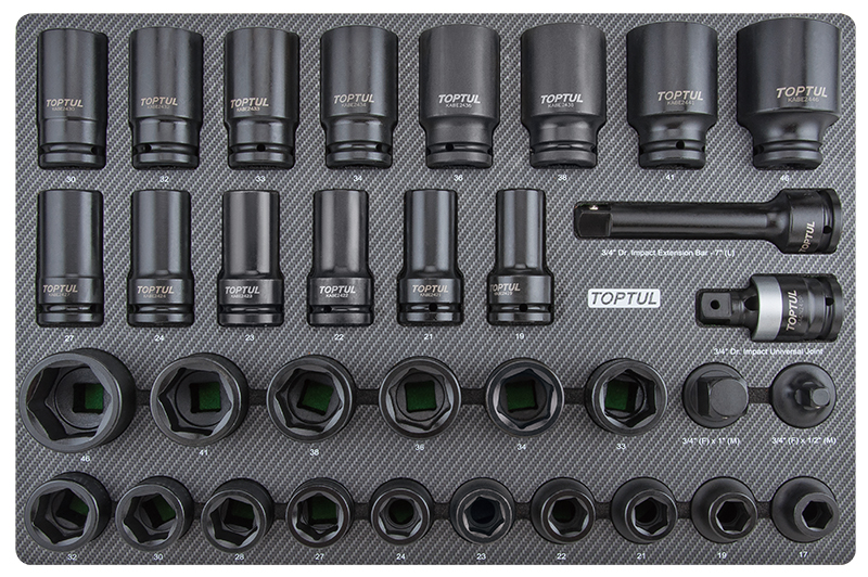 Набор ударных головок 3/4'' 17-46 мм короткие и длинные, 34 пр. в мягком ложементе (D) TOPTUL купить в Барнауле и других городах России