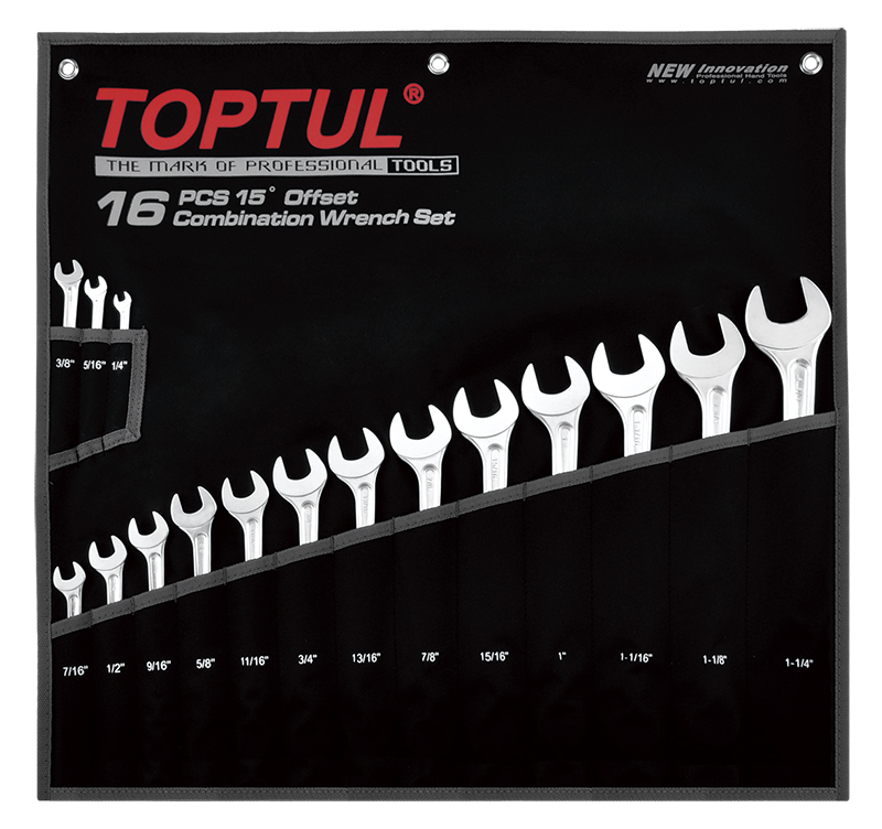 Набор ключей комбинированных дюймовых 1/4"-1-1/4", 16 предметов на полотне TOPTUL GPBX1601 купить в Барнауле и других городах России