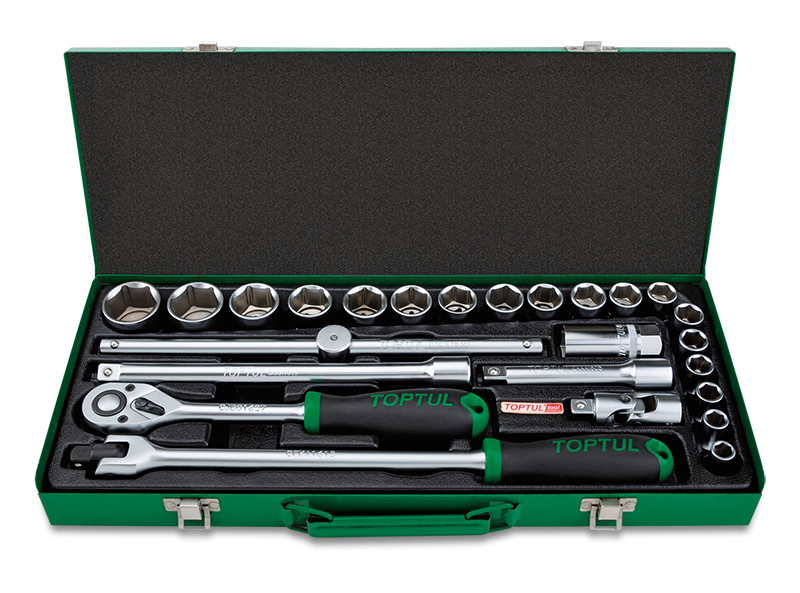 Набор головок и аксессуаров 1/2" 6-гранных 10-32мм, 25 предметов в метал.кейсе TOPTUL GCAD2511 купить в Барнауле и других городах России