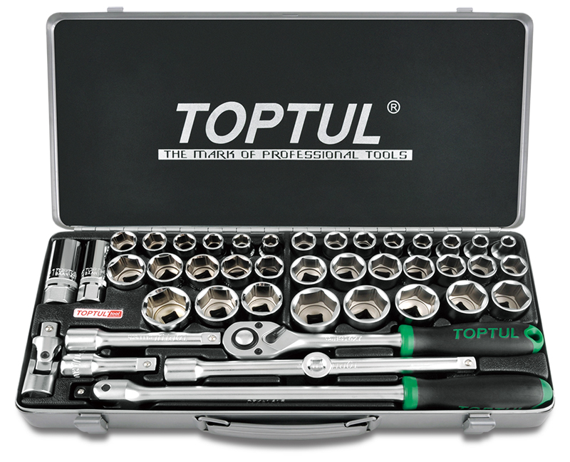 Набор головок и аксессуаров 1/2" 6-гранных 8-32 мм, 43 предмета в метал. кейс TOPTUL GCAD4303 купить в Барнауле и других городах России