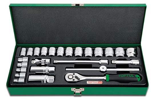 Набор головок и аксессуаров 3/8" 12-гранных 6-24 мм, 25 предметов в метал. кейсе TOPTUL GCAD2504 купить в Барнауле и других городах России